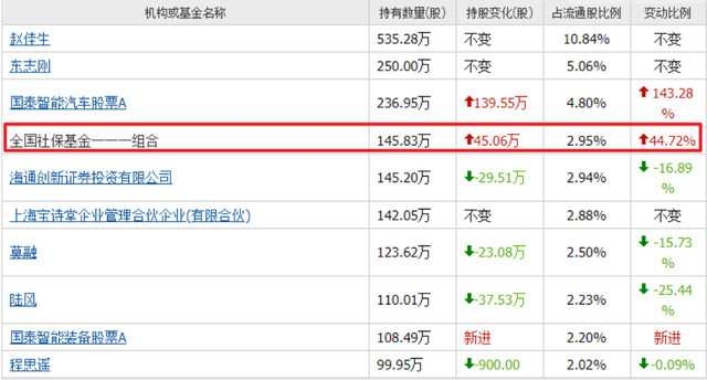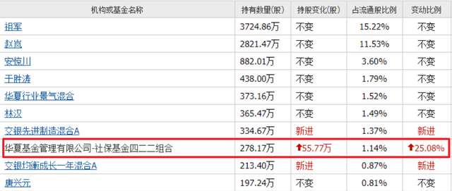 一季度,社保基金四二二组合再度加仓55.77万股,合计持有278万股,位列第八大流通股东。