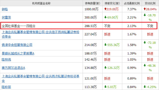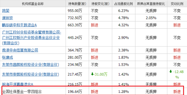 一季度,社保基金一零四组合新进196万股,位列第十大流通股东。