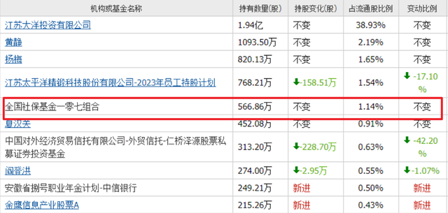 一季度,社保基金四二零组合持有公司209万股,位列第二大流通股东。