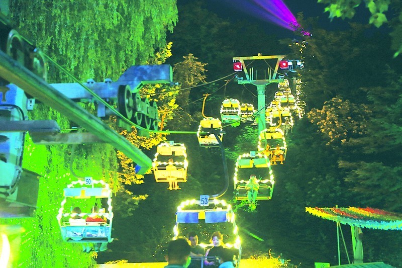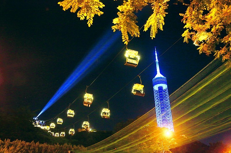 夜幕降临,华灯初上,劳动公园的索道化身为一条流光溢彩的空中走廊,带你穿行于静谧的山林之间。索道车厢在夜色中轻盈滑过,点点灯光如星辰闪烁,光影交织间,将浪漫氛围瞬间点燃。这场流动的视觉盛宴,让你既能俯瞰绿意盎然的公园景致,又能远眺都市的璀璨灯火,感受自然与城市的诗意交融。